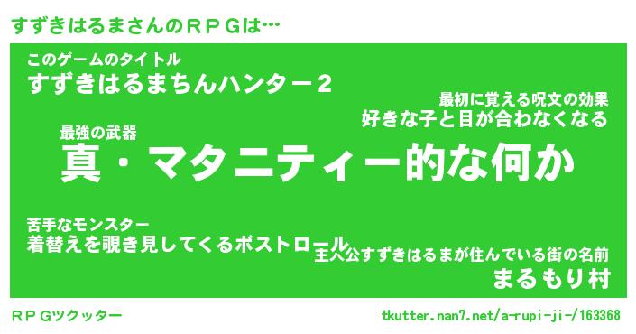 | 伝説のあだ名 | 『封印されしスナイパーすずきはるま』 |