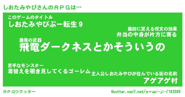 | 男性向けラノベタイトル風あだ名 | 『シオタミヤビアートオンライン』 |
