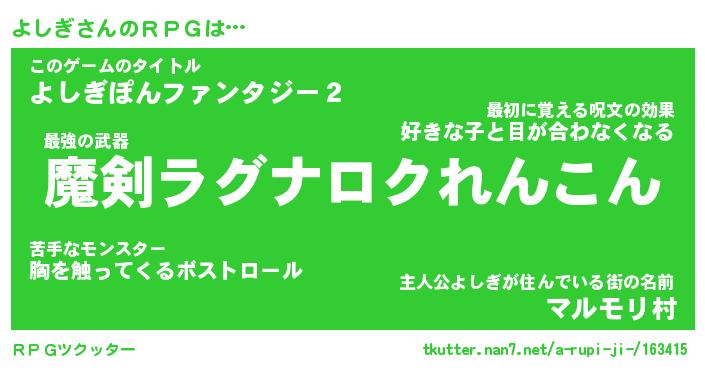 | 伝説のあだ名 | 『伝説の竜騎士よしぎ』 |