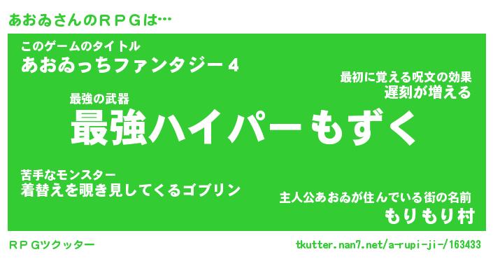 | ファンタジー風あだ名 | 『アオフェル』『エターナルアオヰー』 |