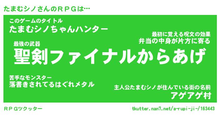 | 伝説のあだ名 | 『伝説の竜騎士たまむシノ』 |