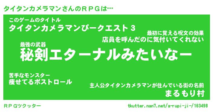 | 男性向けラノベタイトル風あだ名 | 『タイタンカメラマンの憂鬱』 |