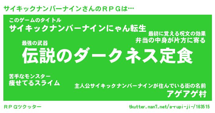 | 料理風あだ名 | 『節約★サイキックナンバーナインと油揚げの玉子丼』 |