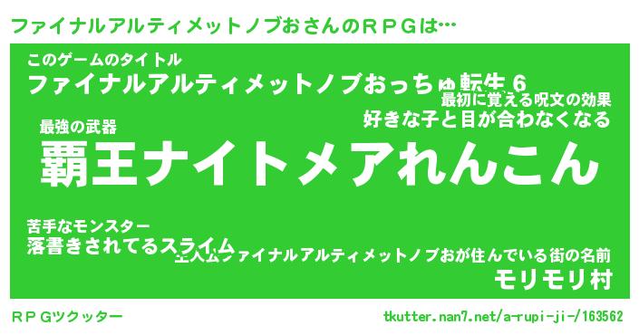 | 胡散臭い通販商品みたいなあだ名 | 『億万長者になれる霊験あらたかなお札…その名も「ファイナルアルティメットノブお」』 |
