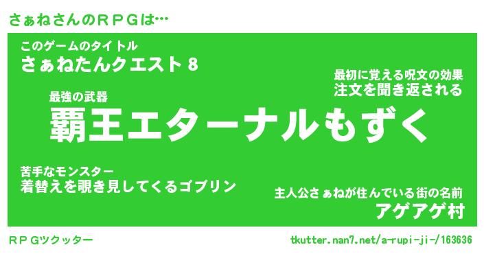 | ファンタジー風あだ名 | 『サァフェル』『エターナルサァネー』 |