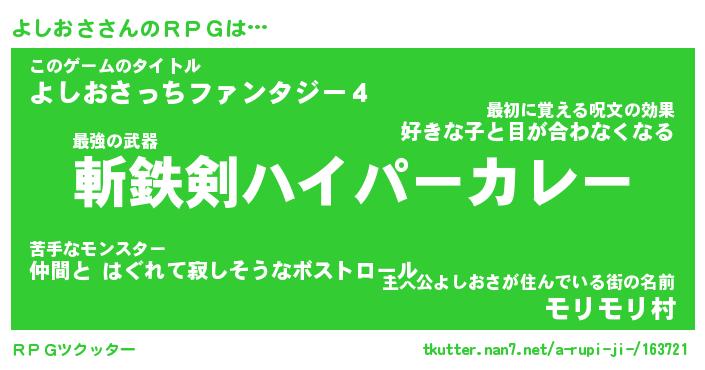 | ファンタジー風あだ名 | 『ヨシフェル』『エターナルヨシオサー』 |