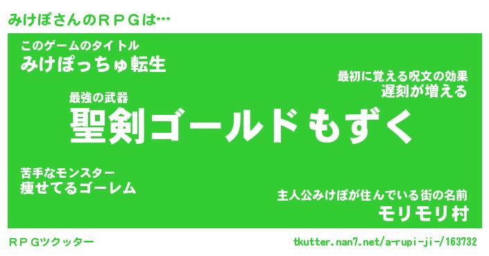 | ヘコむあだ名 | 『みけもー』『なまこ酢』『みけっ子』 |