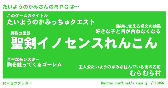 | 伝説のあだ名 | 『伝説のスナイパーたいようのかみ』 |