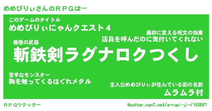 | ファンタジー風あだ名 | 『メメフェル』『エターナルメメビリィー』 |