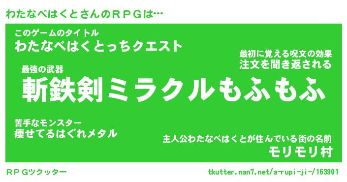 | 2回繰り返すあだ名 | 『わたわた』『わわたた』『ぬめぬめ』 |
