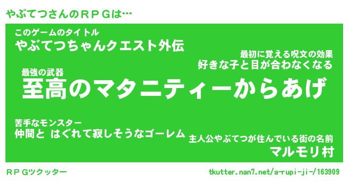 | 意味不明あだ名 | 『ペロリンやぶてつ』『永久保存やぶてつ』 |