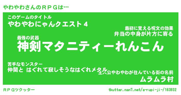 | ファンタジー風あだ名 | 『ヤワフェル』『エターナルヤワヤワー』 |
