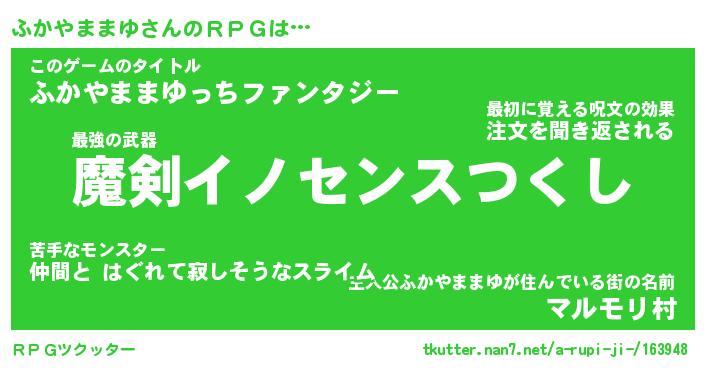 | 伝説のあだ名 | 『伝説のスナイパーふかやままゆ』 |