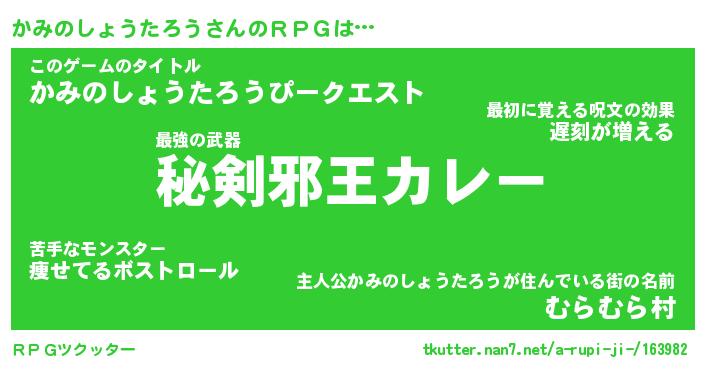 | 男性向けラノベタイトル風あだ名 | 『かみのしょうたろうの憂鬱』 |