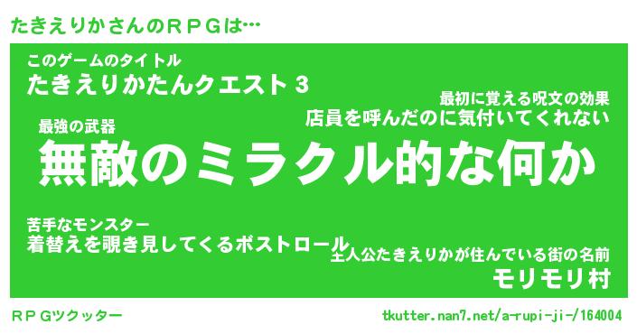 | 伝説のあだ名 | 『封印されし竜騎士たきえりか』 |