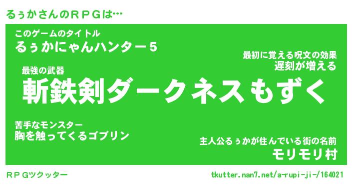 | ファンタジー風あだ名 | 『ルゥフェル』『エターナルルゥカー』 |