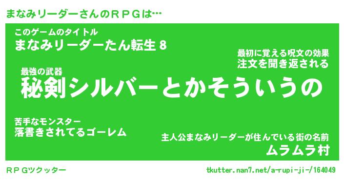 | 胡散臭い通販商品みたいなあだ名 | 『必ず成功する水晶球…その名も「まなみリーダー」』 |
