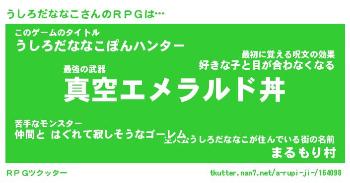 | 胡散臭い通販商品みたいなあだ名 | 『億万長者になれる霊験あらたかなお札…その名も「うしろだななこ」』 |