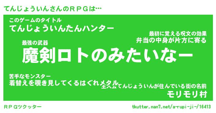 | 男性向けラノベタイトル風あだ名 | 『てんじょういんの憂鬱』 |