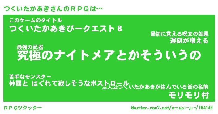| 男性向けラノベタイトル風あだ名 | 『ツクイタカアキアートオンライン』 |