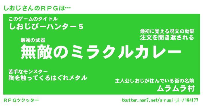 | 胡散臭い通販商品みたいなあだ名 | 『億万長者になれるブレスレット…その名も「しおじ」』 |