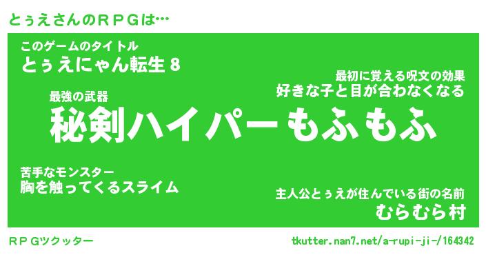 | ファンタジー風あだ名 | 『トゥフェル』『エターナルトゥエー』 |