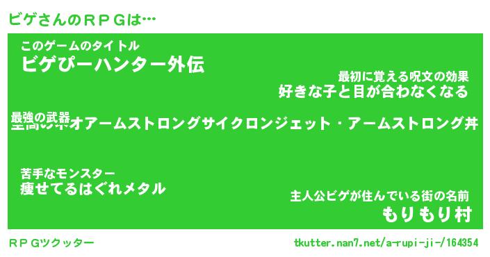 | ヘコむあだ名 | 『ビゲにー』『なまこ酢』『ビゲを』 |