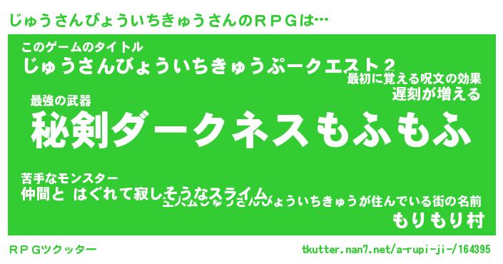 | ヘコむあだ名 | 『じゅにゅー』『つくし』『じゅお』 |