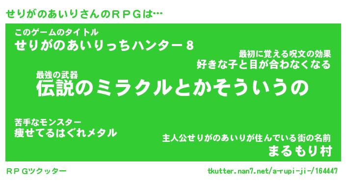 | ヘコむあだ名 | 『せりにー』『レバニラ』『せり太郎』 |