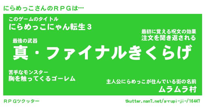 | ファンタジー風あだ名 | 『ニラフェル』『エターナルニラメッコー』 |