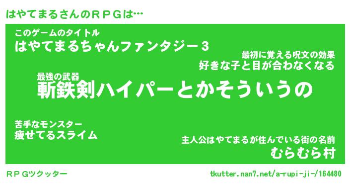 | ヒーロー風カッコイイあだ名 | 『スーパーハヤテマル』『黄金騎士ハヤ』 |