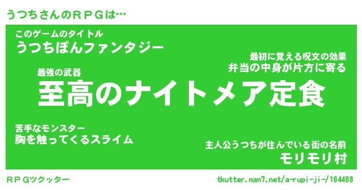 | ヘコむあだ名 | 『うつっふぃ~』『豆乳』『うつお』 |