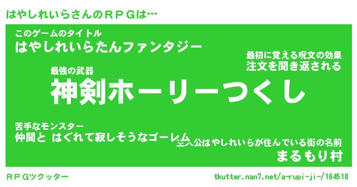 | ヒーロー風カッコイイあだ名 | 『スーパーハヤシレイラ』『幻影騎士ハヤ』 |