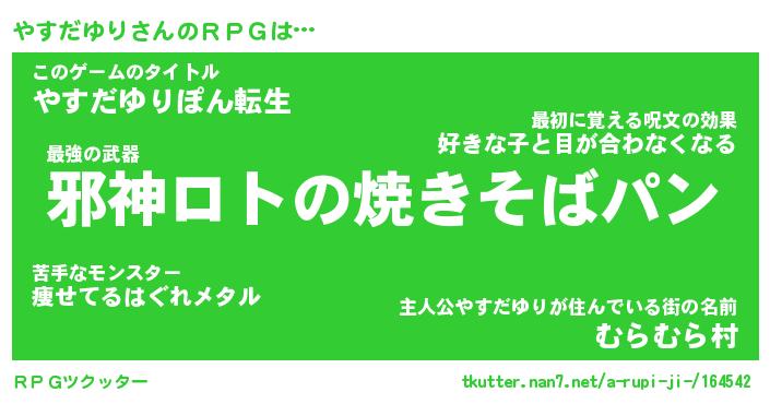 | 胡散臭い通販商品みたいなあだ名 | 『億万長者になれるブレスレット…その名も「やすだゆり」』 |