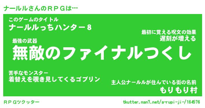 | 男性向けラノベタイトル風あだ名 | 『ナールルアートオンライン』 |