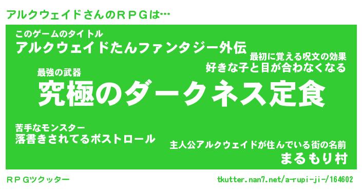 | 男性向けラノベタイトル風あだ名 | 『アルクウェイドの憂鬱』 |
