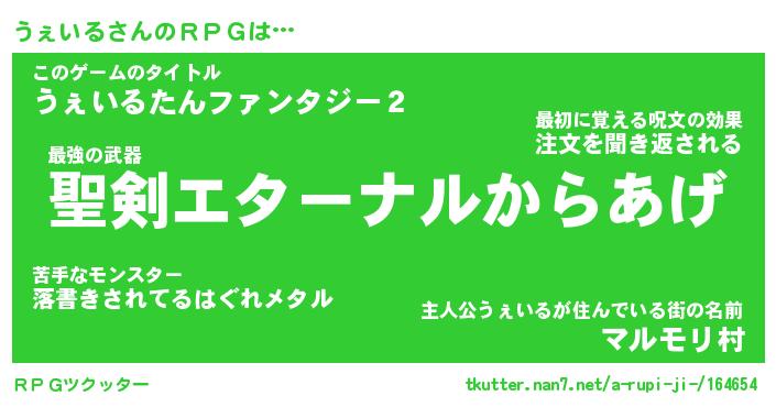 | ファンタジー風あだ名 | 『ウェフェル』『エターナルウェイルー』 |