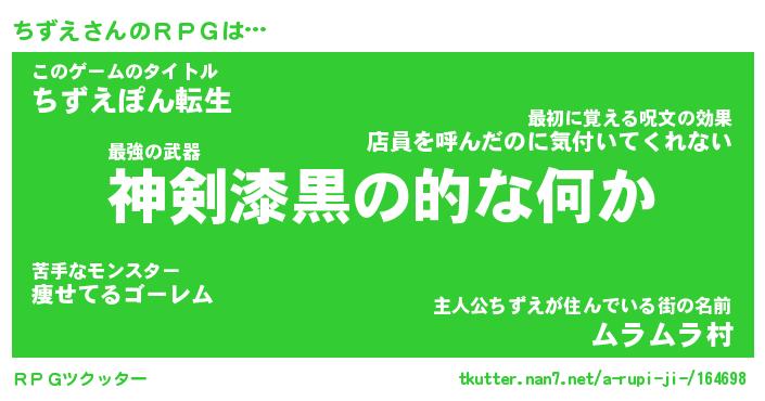 | 男性向けラノベタイトル風あだ名 | 『ちずえの憂鬱』 |