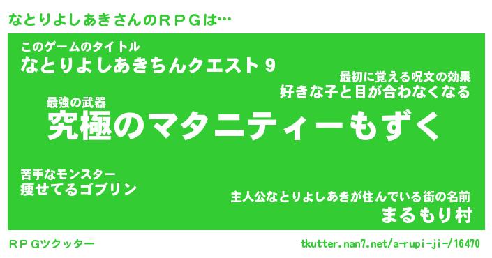 | 男性向けラノベタイトル風あだ名 | 『なとりよしあきの憂鬱』 |