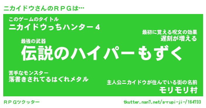 | ヒーロー風カッコイイあだ名 | 『スーパーニカイドウ』『魔戒騎士ニカ』 |