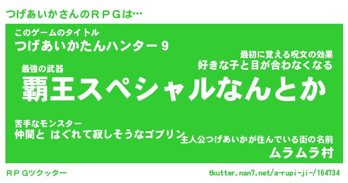 | ファンタジー風あだ名 | 『ツゲフェル』『エターナルツゲアイカー』 |