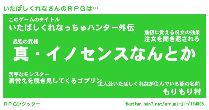| 男性向けラノベタイトル風あだ名 | 『イタバシクレナアートオンライン』 |