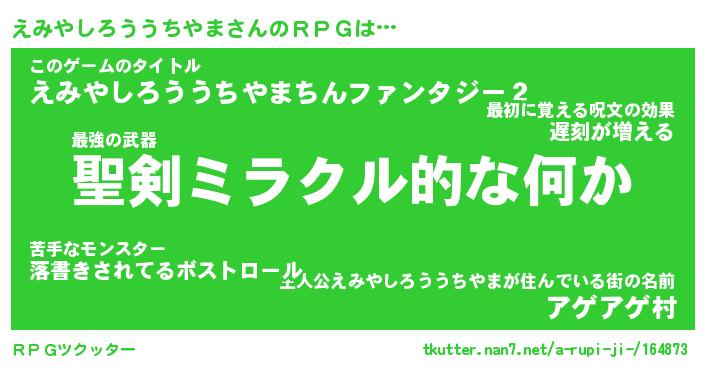 | 伝説のあだ名 | 『伝説の竜騎士えみやしろううちやま』 |