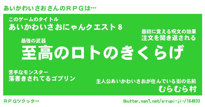 | 男性向けラノベタイトル風あだ名 | 『アイカワイサオアートオンライン』 |