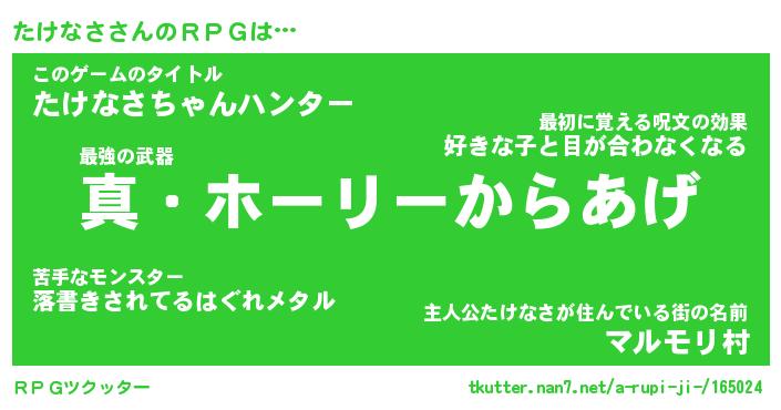 | ファンタジー風あだ名 | 『タケフェル』『エターナルタケナサー』 |