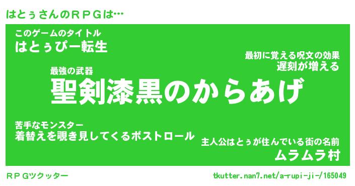 | 胡散臭い通販商品みたいなあだ名 | 『必ず成功する霊験あらたかなお札…その名も「はとぅ」』 |