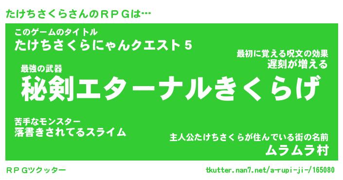 | 男性向けラノベタイトル風あだ名 | 『たけちさくらの憂鬱』 |