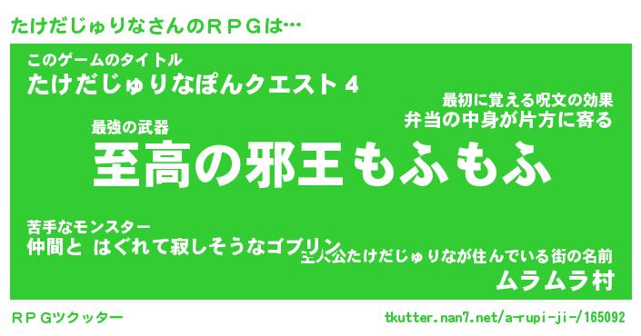 | 胡散臭い通販商品みたいなあだ名 | 『モテモテ間違いなし水晶球…その名も「たけだじゅりな」』 |