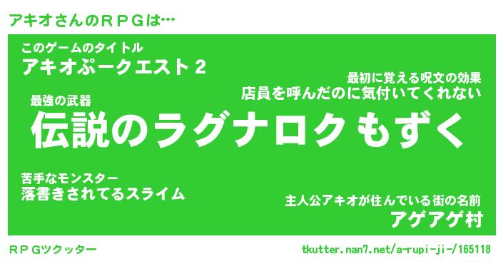| 男性向けラノベタイトル風あだ名 | 『アキオの憂鬱』 |
