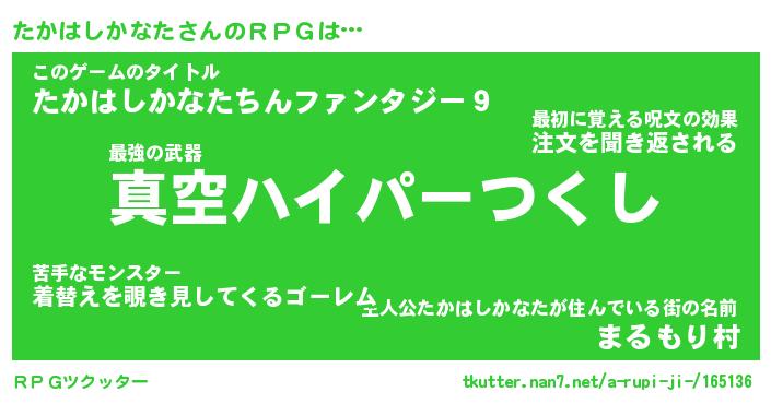 | 男性向けラノベタイトル風あだ名 | 『タカハシカナタアートオンライン』 |